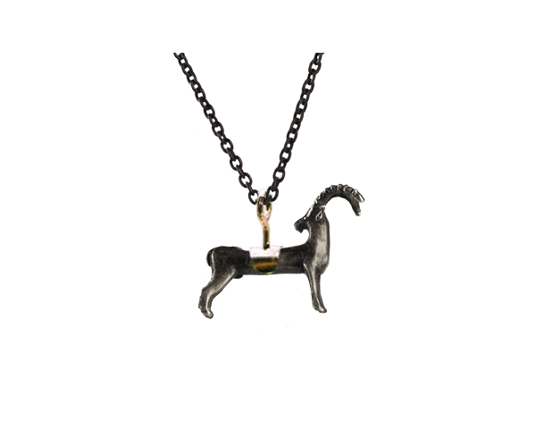 Hand-carved, oxidized silver goat with a 14k gold harness! The cutest GOAT there is!